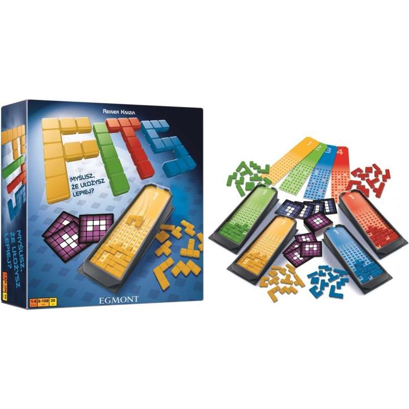 Szybka, prosta i niesamowicie wciągająca gra rodzinna. Gracze starają się zapełnić swoją planszę klockami o różnych kształtach. Klocki zsuwają się po rampie, jak w "Tetrisie", jednak w zależności od rundy niektóre pola trzeba zasłonić, a niektóre zostawić widoczne. FITS to międzynarodowy bestseller, zdobywca ponad 10 nagród i nominacji - w tym do prestiżowej Spiel des Jahres tytułem najlepszej gry roku w Szwecji.