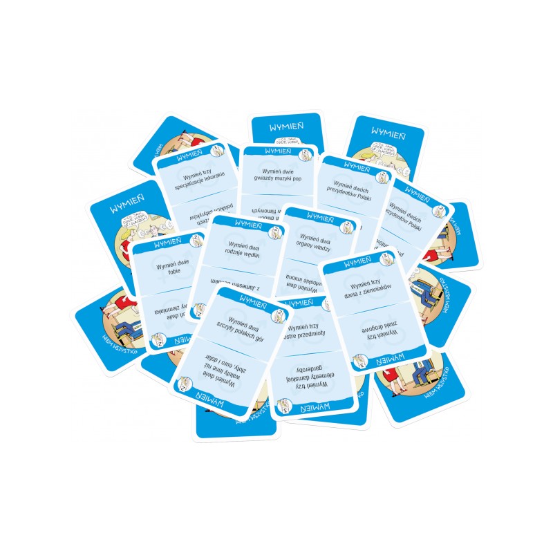 Wiem wszystko to planszowa wersja teleturnieju, w którą można grać we dwoje lub parami, w większym gronie znajomych. Pytania nawiązują do najsłynniejszych formatów show telewizyjnych i odnoszą się do najróżniejszych dziedzin.