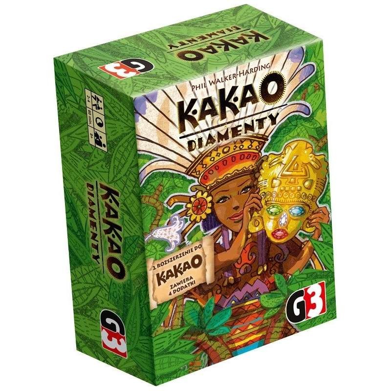 Kakao - Diamenty wprowadza do rozgrywki kolejne cztery interesujące dodatki: Kopalnię kamieni szlachetnych, Drzewo życia, Łaskę cesarza i nowych pracowników. Nowe dodatki można mieszać z dodatkami z rozszerzenia Kakao: Czekolada. Można również stworzyć "dużą grę", w której wykorzystuje się podstawową wersję Kakao oraz wszystkie dostępne dodatki.