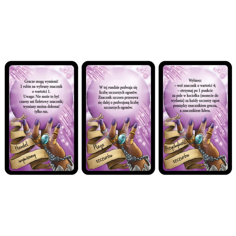 - Gra trwa dziewięć rund, podczas których, wszyscy gracze w tym samym czasie, losują składniki i dokładają je do swoich kociołków.