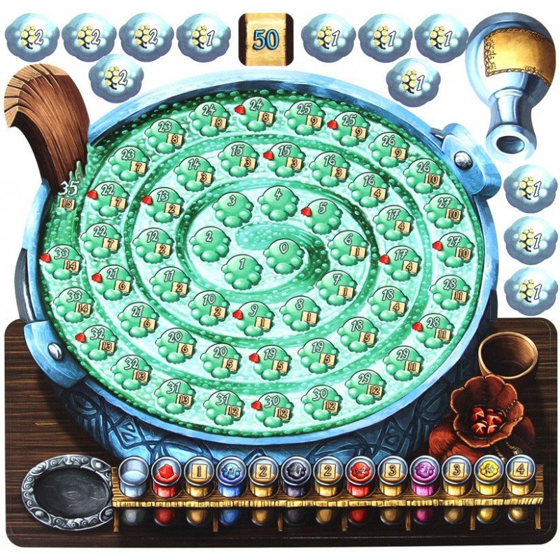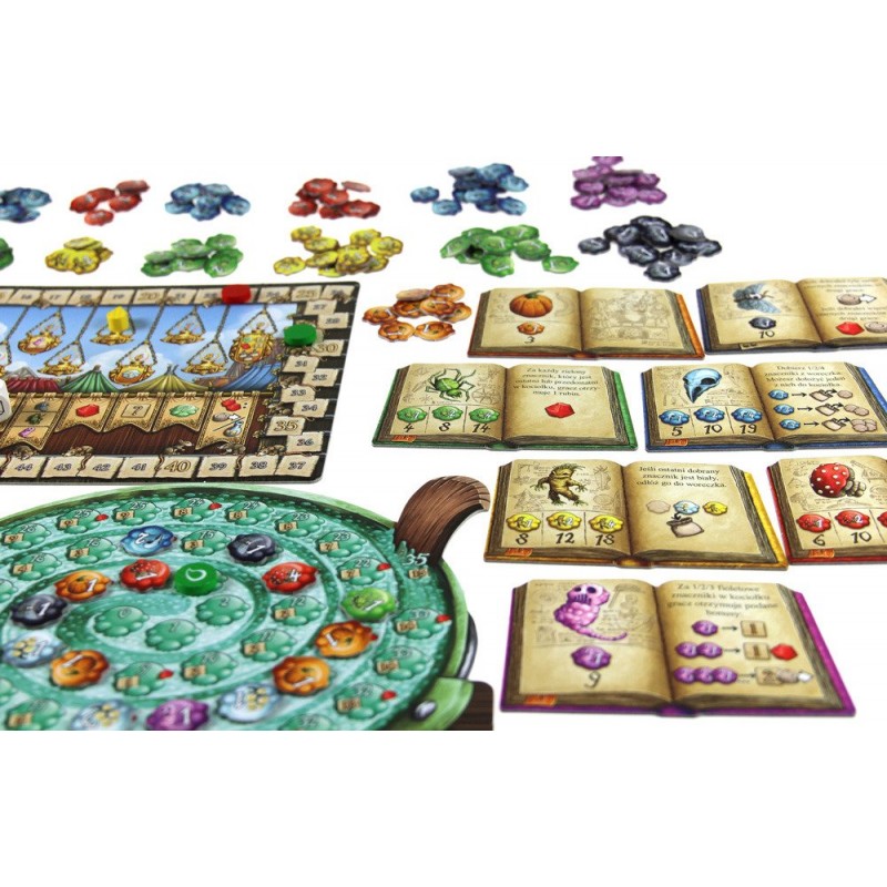- Gracze sami decydują kiedy chcą przerwać losowanie składników, muszą jednak uważać - jeśli wartość białych znaczników na planszy przekroczy siedem, kociołek wybucha!