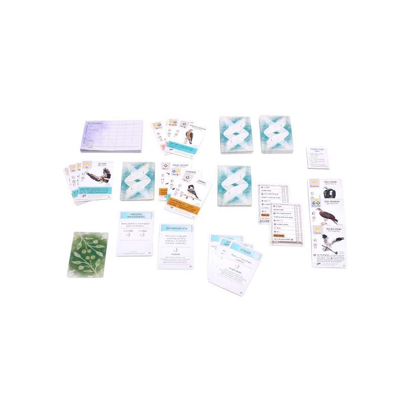 Dodatek Ptaki Europy zawiera także dodatkową tackę, aby utrzymać porządek wśród rosnącej kolekcji ptaków (z gry podstawowej, obecnego dodatku i przyszłych rozszerzeń), 15 fioletowych jaj, dodatkowe żetony pożywienia, nowe żetony celów, karty bonusowe i nowy kolorowy notes punktacji zarówno dla gry jednoosobowej, jak i wariantów dla wielu graczy.