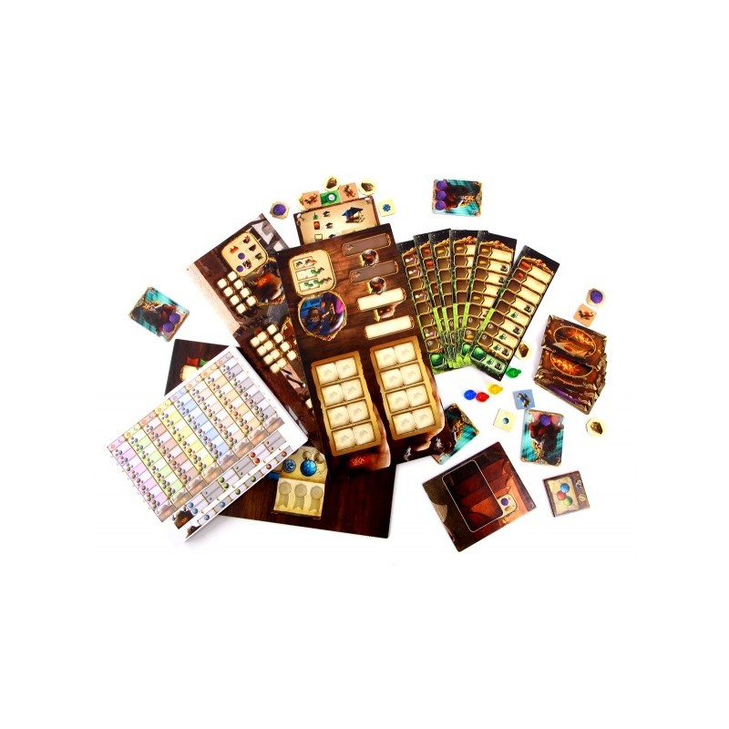 - Królewska Encyklopedia (dwustronna plansza encyklopedii, kafel stypendium encyklopedycznego, 16 żetonów składników, 4 białe pieczęcie bez gwiazdek, 4 dodatkowe pieczęcie ze srebrną gwiazdką),