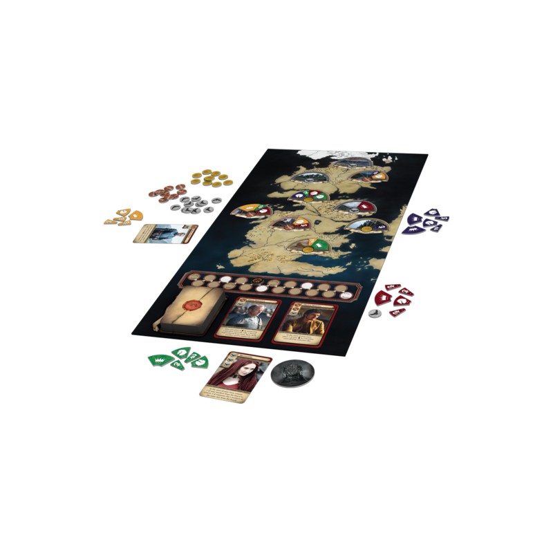 Gra o Tron: Quiz to gra dla 2 do 4 graczy (lub drużyn), której celem jest kontrola jak największej liczby lokacji. Ponad 1200 pytań o różnym stopniu trudności, oznaczonych numerem sezonu, z którego pochodzą, zapewnia wpływy w miastach. W swojej turze wybierasz, na ile pytań chcesz odpowiedzieć i na którą twierdzę przypuścisz szturm. Możesz też zawierać krótkotrwałe sojusze lub zdać się tylko na siebie.