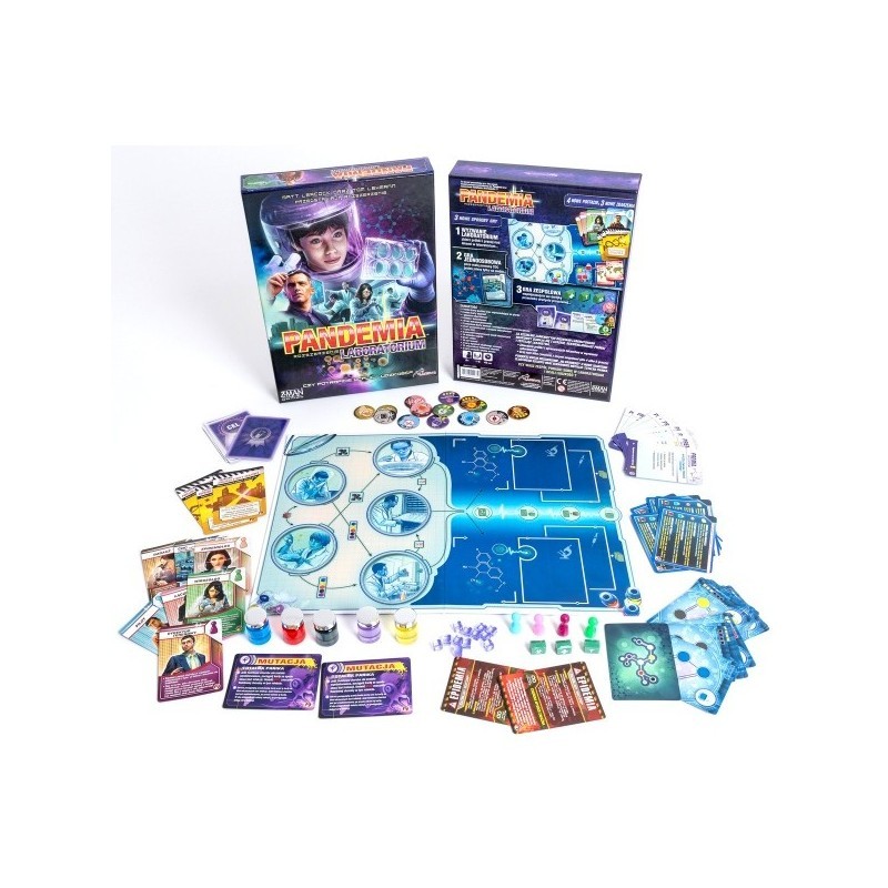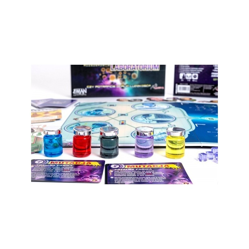 Za szczelnymi drzwiami laboratorium naukowcy ścigają się z czasem, sekwencjonując zebrane próbki i testując leki mające uratować ludzkość. Odmieńcie rozgrywkę i zmierzcie się z wyzwaniami stawianymi przez Laboratorium: nowymi postaciami, zdarzeniami, złośliwymi szczepami oraz nowymi scenariuszami mutacji. W instrukcji znajdziecie również zasady rozgrywania kampanii jednoosobowych oraz rozgrywek zespołowych.