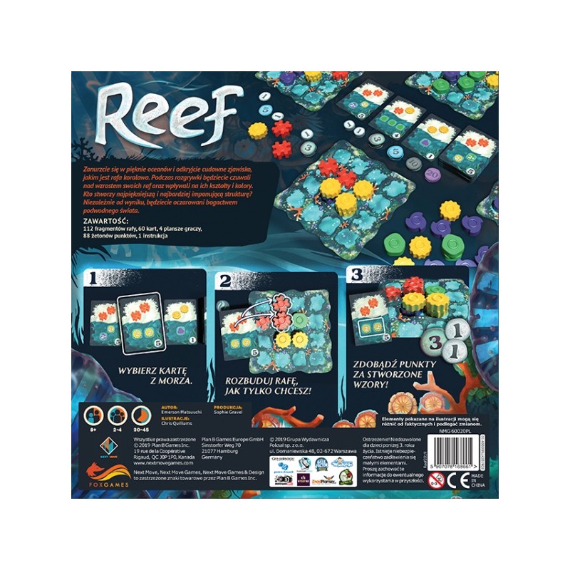 Reef to bajkowo kolorowa abstrakcyjna gra logiczna, w której zadaniem graczy jest stworzenie najpiękniejszej rafy koralowej.