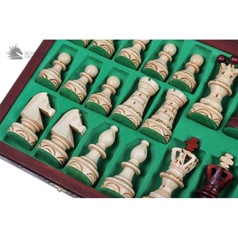 Szachy Ambasador dzięki ich wadze, dużemu rozmiarowi i eleganckiemu, unikatowemu stylowi są uznawane za szachy luksusowe. Przepiękne figury, które stanowią znak rozpoznawczy tego kompletu, są wykonane z drewna jaworowego i grabowego. Zarówno one, jak i kasetka mają wypalone dodatkowe zdobienia. Kasetka posiada wewnątrz wkładkę, idealnie dopasowaną do rozmiaru figur.