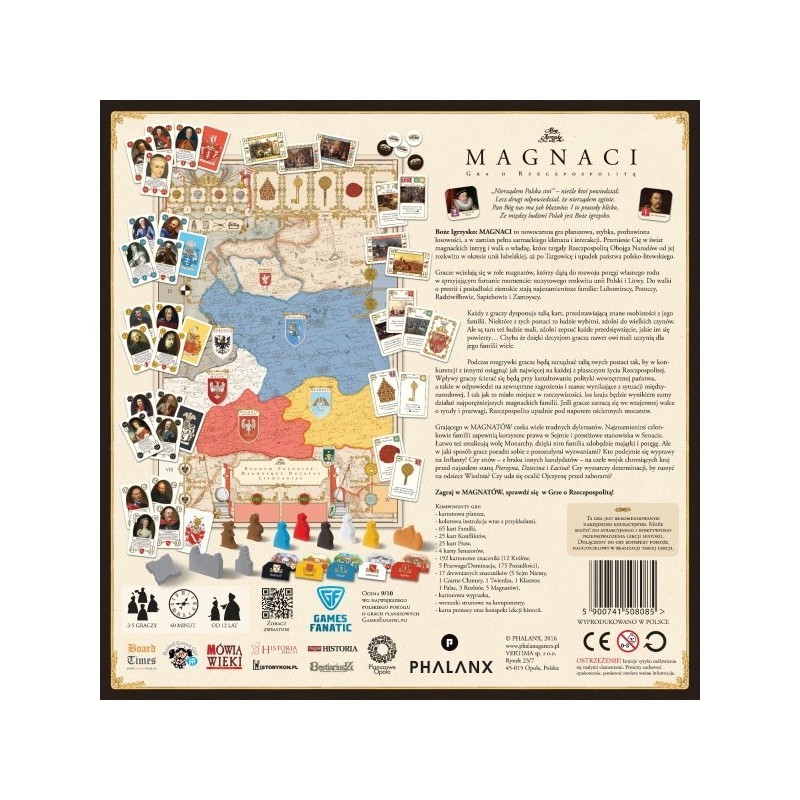 Boże Igrzysko: MAGNACI, to nowoczesna gra planszowa dla 2 – 5 graczy, szybka, pozbawiona losowości, a w zamian pełna sarmackiego klimatu i interakcji. Przeniesie Cię w świat magnackich intryg i walki o władzę, które targały Rzeczpospolitą Obojga Narodów od jej rozkwitu w okresie Unii Lubelskiej, aż po Targowicę i upadek państwa polsko – litewskiego.