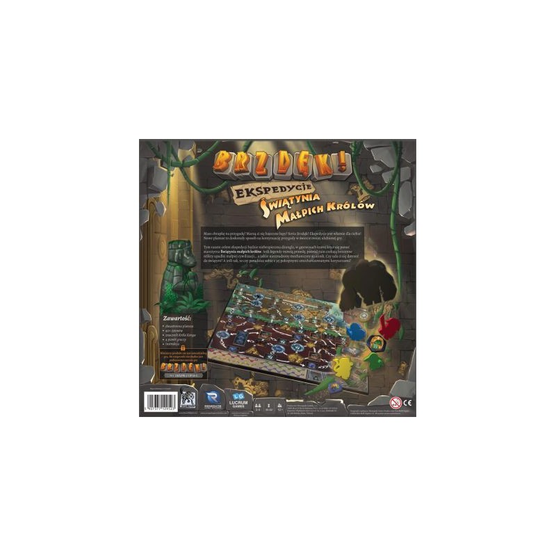 Masz chrapkę na przygodę? Marzą ci się bajeczne łupy? Seria Brzdęk! Ekspedycje jest właśnie dla ciebie! Nowe plansze to doskonały sposób na kontynuację przygody w świecie twojej ulubionej gry. Tym razem celem ekspedycji będzie niebezpieczna dżungla, w gęstwinach której kryje się ponoć starożytna Świątynia Małpich Królów. Jeśli legendy mówią prawdę, pośród ruin czekają bezcenne relikty upadłej małpiej cywilizacji... a także niestrudzony mechaniczny strażnik. Czy uda ci się dotrzeć do świątyni? A jeśli tak, to czy poradzisz sobie z jej pokrętnymi zmechanizowanymi korytarzami?
