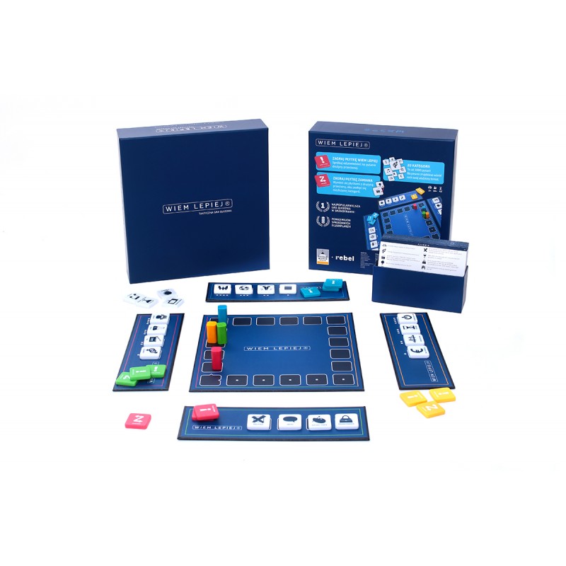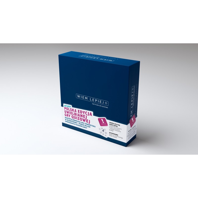 Wiem lepiej to karciana gra quizowa, w której drużyny rywalizują o zwycięstwo odpowiadając na pytania. Oprócz sprawdzania naszej wiedzy, gra oferuje również możliwości taktyczne, które skutecznie przybliżają nas do zwycięstwa (lub odciągają od niego naszych przeciwników).