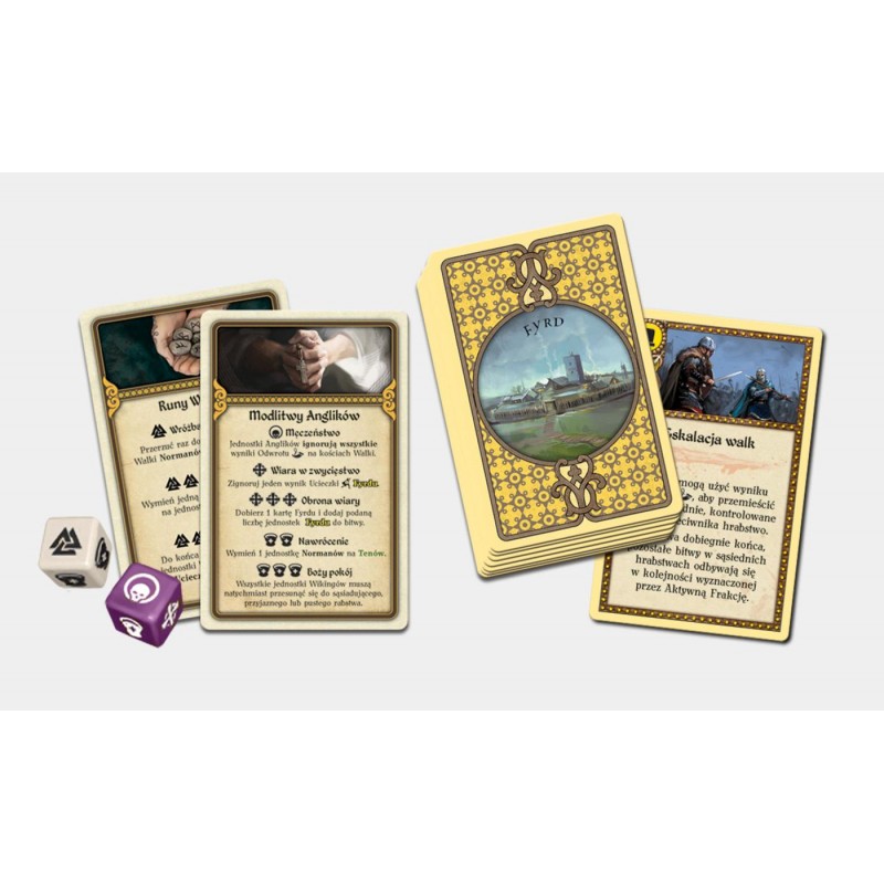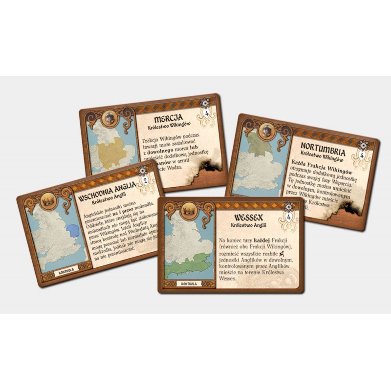 Anglicy z kolei losują dwa święte miejsca, które mogą umieścić w odpowiednich hrabstwach i tak długo jak je kontrolują otrzymują z nich wsparcie. Np. Głowa Świętego Oswalda, umieszczana w Durham, pozwala Anglikom zajrzeć raz na rundę w karty wybranej frakcji wikingów.