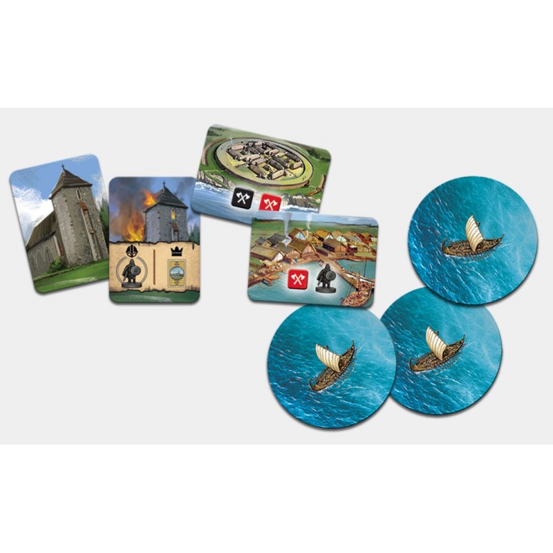 To 7 żetonów drakkarów, które pojawiają się na planszy wraz z każdą inwazją wodza wikingów. Wikingowie zyskują kontrolę nad hrabstwami, na których wylądowali i mogą dodatkowo przesuwać się między nimi za normalny koszt ruchu armii.