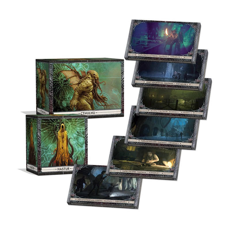 Talia kart Mitów to połączenie kart wybranego Przedwiecznego oraz kart wybranego przez graczy Scenariusza. Każda rozgrywka to nie tylko nowe kafle plansz użyte do stworzenia mapy, ale również nowe akcje, które Badacze będą mogli wykonać, by przerwać kultowi dokończenie rytuału.