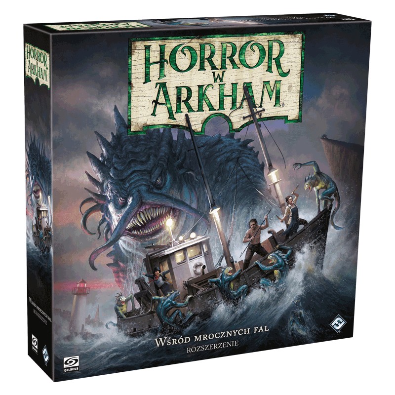 Horror w Arkham: Wśród mrocznych fal to kolejne duże rozszerzenie, które poprowadzi wasze śledztwo poza granice Arkham ku innym nieszczęsnym miasteczkom Massachusetts. Dwa nowe, dwustronne kafelki dzielnic pozwolą wam zwiedzić tętniące życiem Kingsport i Innsmouth w towarzystwie ośmiu nowych badaczy, wśród których znajdują się między innymi Pete „Włóczęga” czy listonoszka Stella Clark. Cele badaczy są jasno wytyczone w ramach czterech zupełnie nowych scenariuszy, stawiających ich oko w oko z okropnościami czającymi się wśród oceanicznych głębin. Dzięki ponad 150 nowym kartom wydarzeń i spotkań, nowym kartom atutów, potworów i spotkań oraz mechanice rozprzestrzeniającej się grozy, Horror w Arkham: Wśród mrocznych fal to prawdziwy podwodny skarb, zachęcający do zagłębienia się w jedne z najznamienitszych historii z uniwersum Cthulhu.