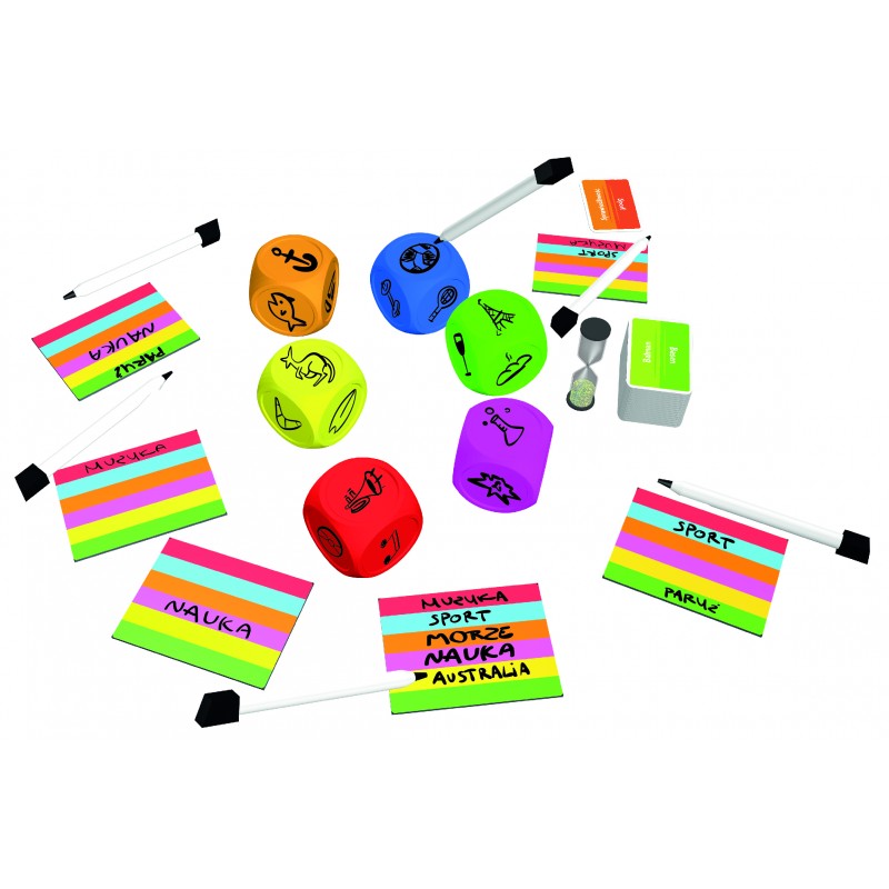 BazgROLL to świetna gra imprezowa dla całej rodziny, w której każdy z graczy tworzy swoją własną, rysunkową kostkę do gry. Po ilu symbolach rozpoznasz hasło "cyrk"? To doskonała zabawa, która rozwija kreatywność. Sprawdź, co idzie Ci lepiej: rysowanie czy odgadywanie haseł innych graczy!