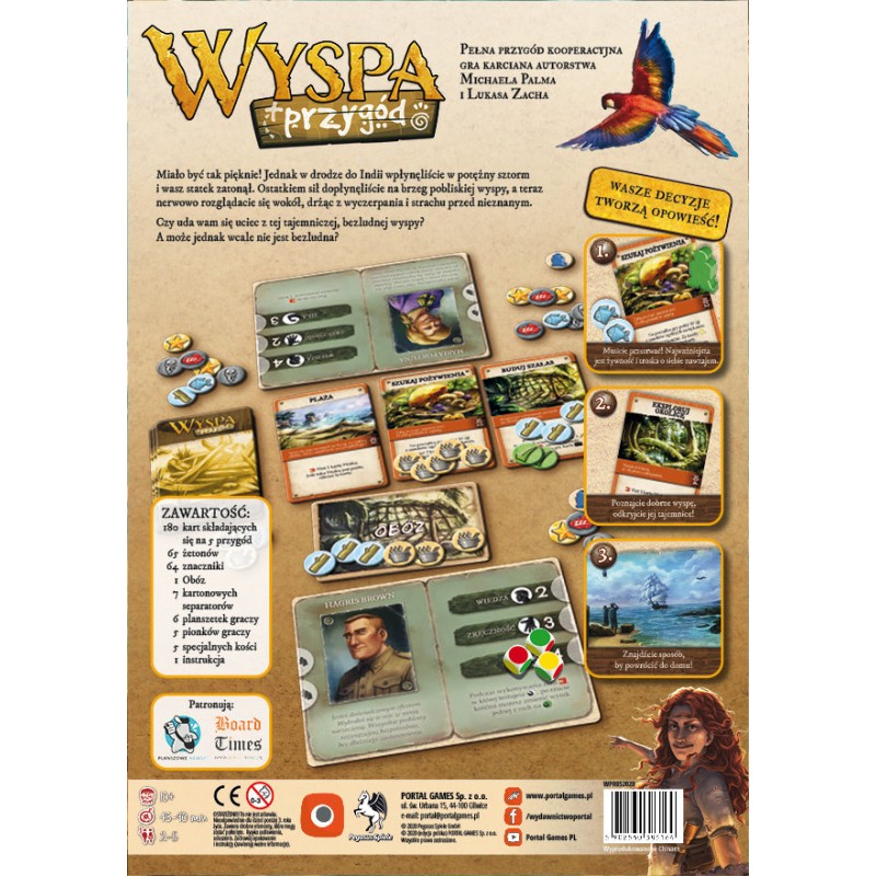 Wyspa przygód to pełna wyzwań kooperacyjna gra karciana dla 2-5 osób autorstwa Michaela Palma i Lukasa Zacha. Podzielona jest na rozdziały (przygody), w wyniku których wchodzą nowe karty. Sposób i kolejność w jakiej zostaną dodane, zależy od was, graczy. Zapewnia to regrywalność i nieliniowość rozgrywki. Nie trzeba rozgrywać wszystkich przygód w tym samym gronie (nie jest to kampania legacy), a każda z nich jest w pełni samodzielna, choć rozgrywając nowe scenariusze posiadacie wiedzę z poprzednich przygód.