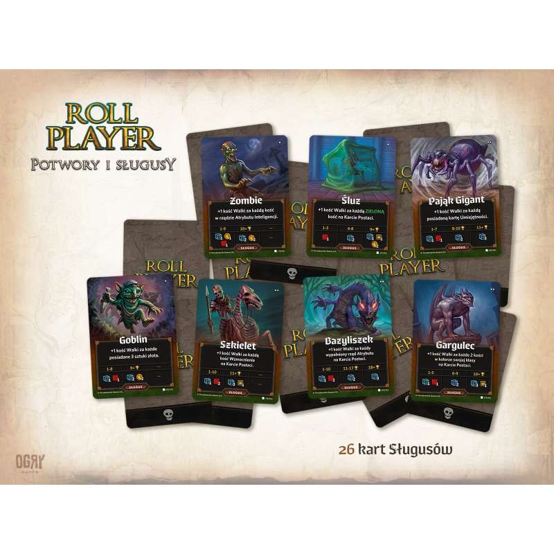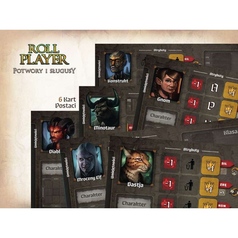 Roll Player: Potwory i sługusy to rozszerzenie, które dzięki zwiększeniu liczby dostępnych elementów urozmaica rozgrywkę znaną z wersji podstawowej, ale także wprowadza zupełnie nowe elementy do mechaniki i strategii gry. Tym razem nie będziemy konkurować wyłącznie o to, kto stworzy najwspanialszego awanturnika fantasy.
