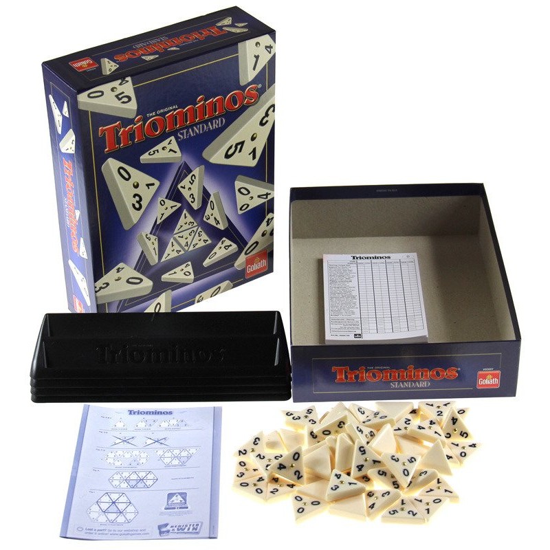 Triominos przypomina klasyczne domino, ale gwarantuje znacznie ciekawszę rozgrywkę. Układane elementy mają kształt równobocznych trójkątów z liczbami w narożnikach. Dostawiając kolejną płytkę do już ułożonego układu, musimy zadbać o to, by numery w sąsiadujących narożnikach były takie same.
