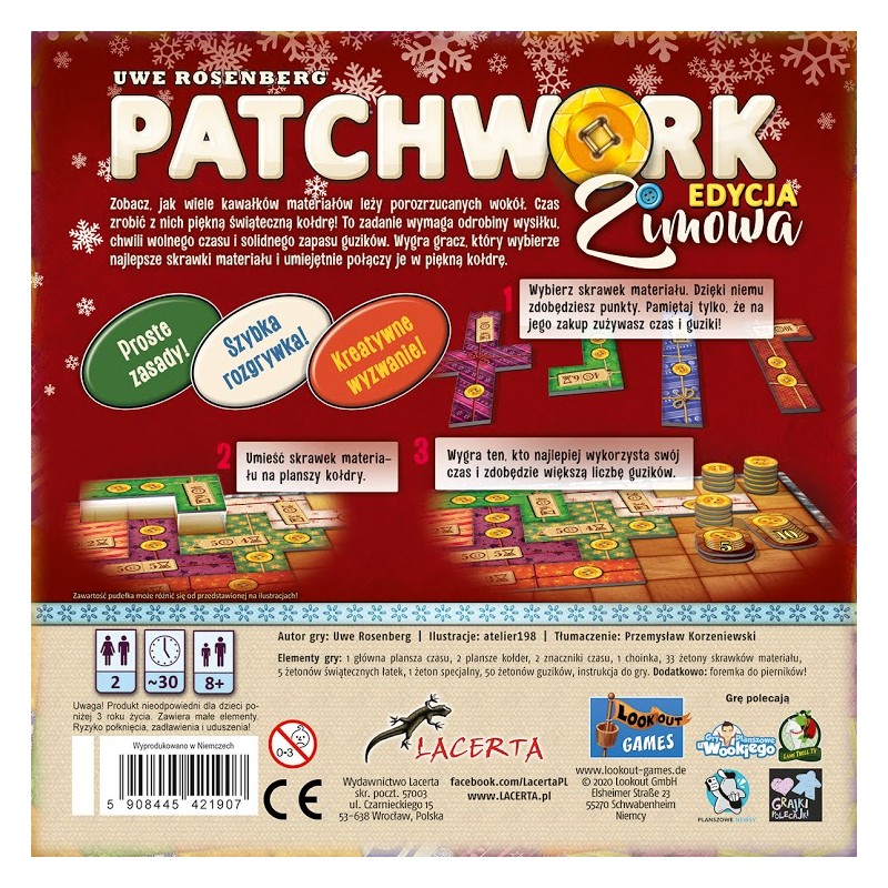 Poza powyższymi różnicami, liczba i rodzaj elementów oraz zasady gry są takie same, jak w zwykłym Patchworku.