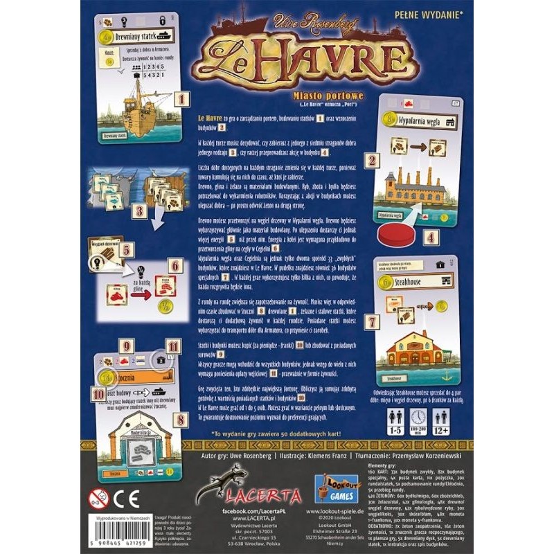 Gra zawiera dodatek Le Havre: Le Grand Hameau oraz 12 kart promocyjnych.