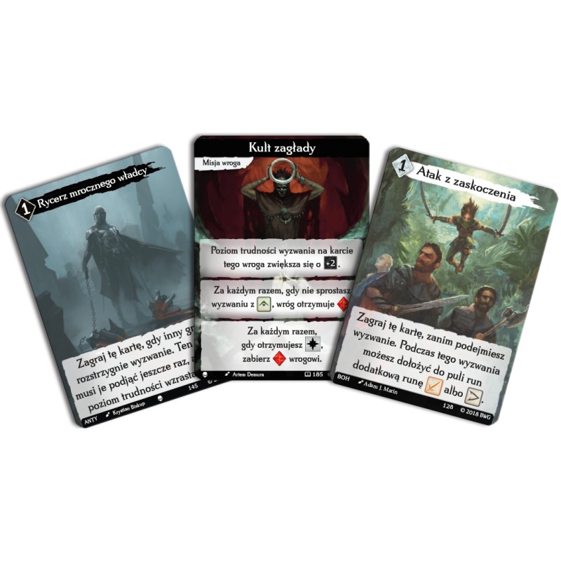 - Wypełnij przeznaczenie. Zagrywaj karty bohaterów i antybohaterów, aby zwiększyć swoje szanse na wygraną i utrudnić rozgrywkę pozostałym graczom. Stań do walki z okrutnymi wrogami. Zdobądź jak najwięcej punktów przeznaczenia i zostań zwycięzcą, a następnie wysłuchaj niesamowitych opowieści o losach bohaterów wszystkich graczy.