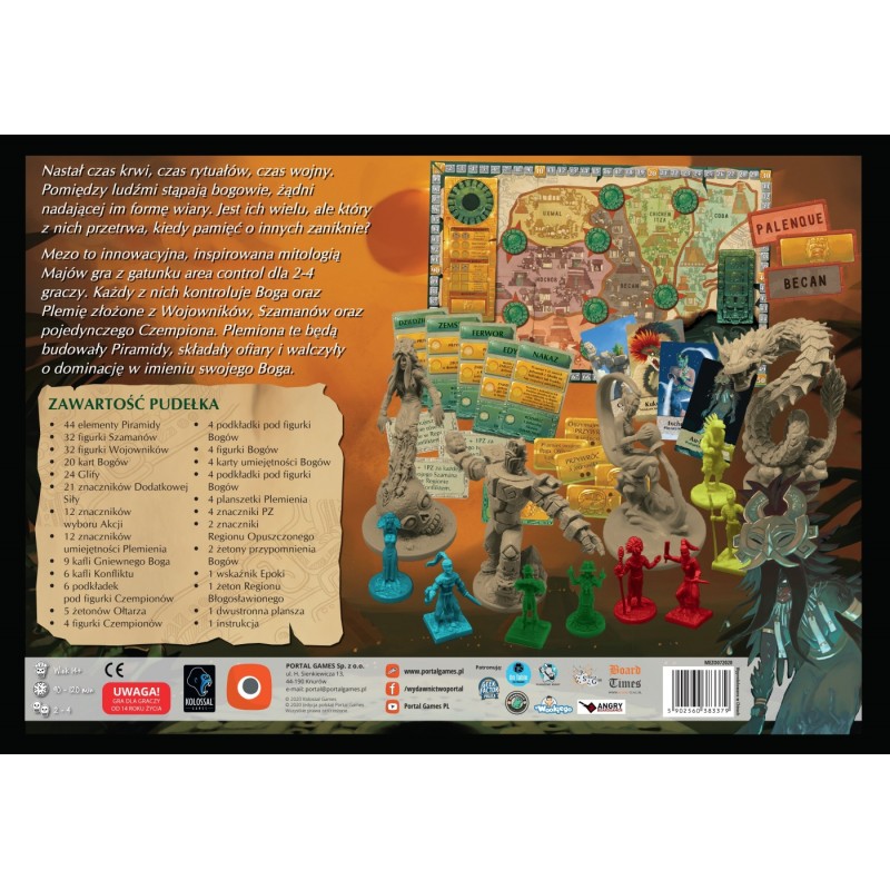 Mezo to innowacyjna gra area control i dudes on a map dla 2-4 graczy zainspirowana mitologią Majów. Będziesz kontrolował potężnego boga, plemię złożone z jego wojowników, szamanów oraz czempiona.