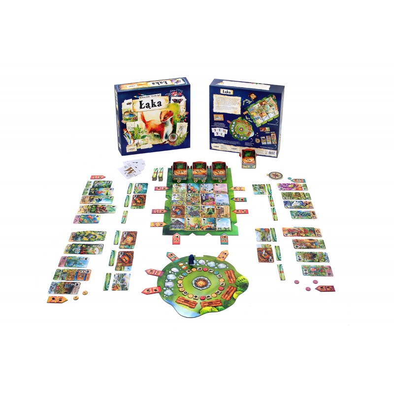 Łąka to gra planszowa, w której wcielamy się w wędrowców obserwujących naturę. Wyposażeni w mapę, spacerujemy po malowniczej okolicy, szukając inspiracji i uwieczniając zapierające dech w piersiach widoki. Kierujemy się pasją i ciekawością świata, ale też rywalizacją o tytuł najwprawniejszego obserwatora przyrody! Przypadnie on temu, kto zdobędzie najwięcej punktów z zaobserwowanych gatunków zwierząt i roślin, krajobrazów oraz pamiątek zebranych z wędrówki. Zmagania toczą się także przy ognisku, gdzie gracze prześcigają się w realizowaniu celów swoich wypraw.