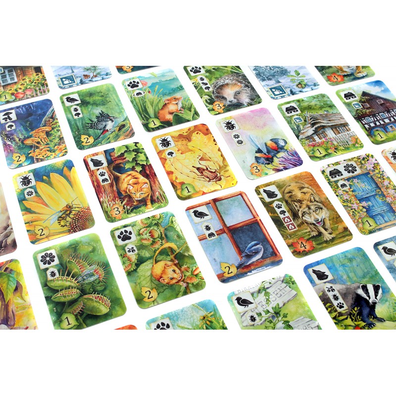 - W grze znajdziemy ponad 200 unikatowych kart inspirowanych przyrodą i krajobrazami centralnej Europy. Dzięki nim kolejne partie różnią się od siebie, a uczestnicy mają okazję wypróbować różne strategie.