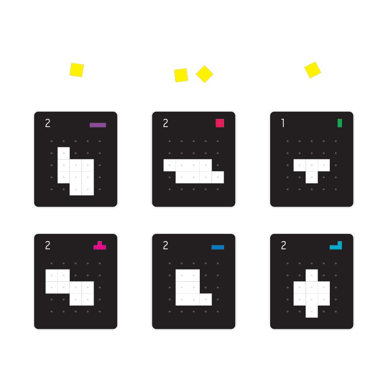 Każda ukończona łamigłówka daje nam nie tylko cenne punkty zwycięstwa, ale również kolejny plastikowy element w określonym kształcie. Dzięki temu możemy na bieżąco planować nie tylko najbliższy ruch, ale też to, jak wykorzystamy nagrody otrzymane w przyszłości.