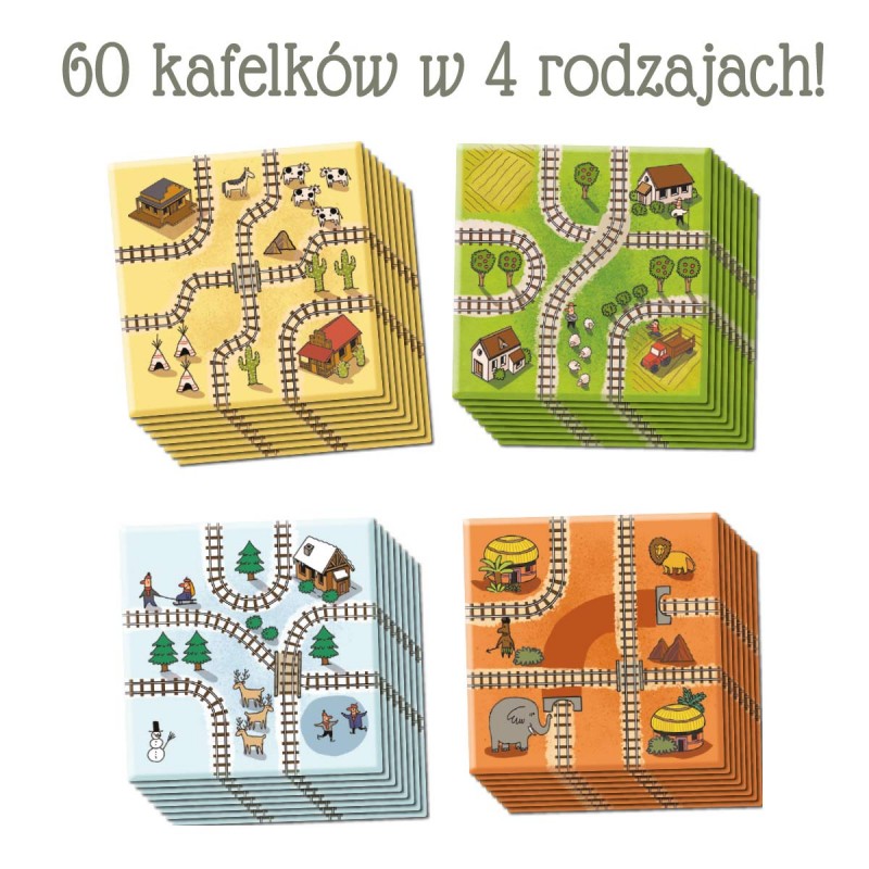 - Dokładając kolejne kafelki z torami, budujesz sieć kolejową dla swoich 4 lokomotyw.