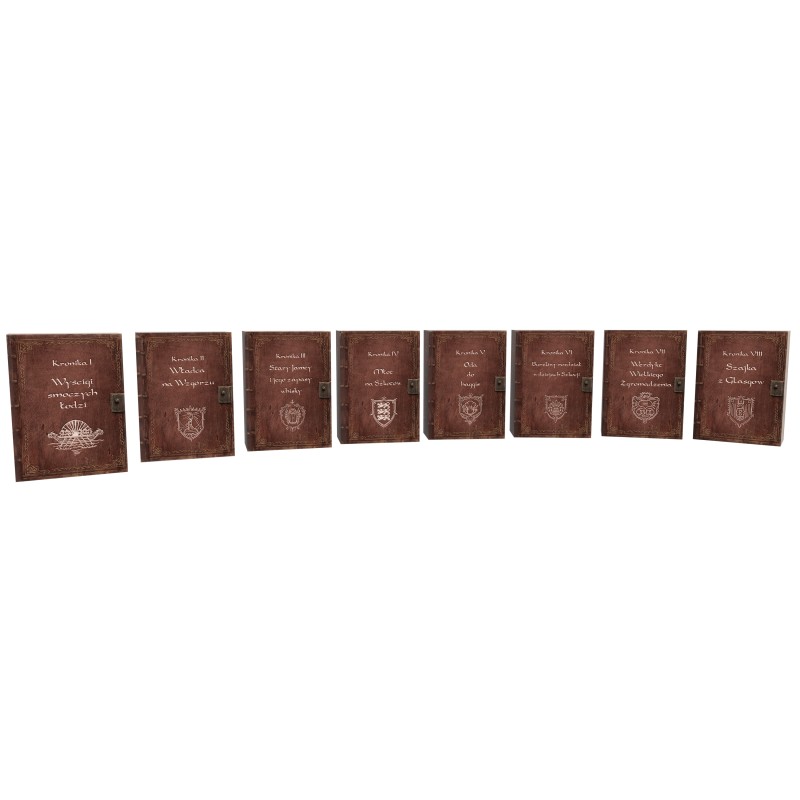 Dodanych zostało również 8 pełnych rozszerzeń (tytułowe Kroniki, które znajdziemy zamknięte w mini pudełkach), a wśród nich dodatek zaprojektowany przez Klausa-Jürgena Wrede (autora Carcassone). Dzięki nim możemy dowolnie rozbudowywać naszą grę, wprowadzając nowe strategie do wypróbowania.
