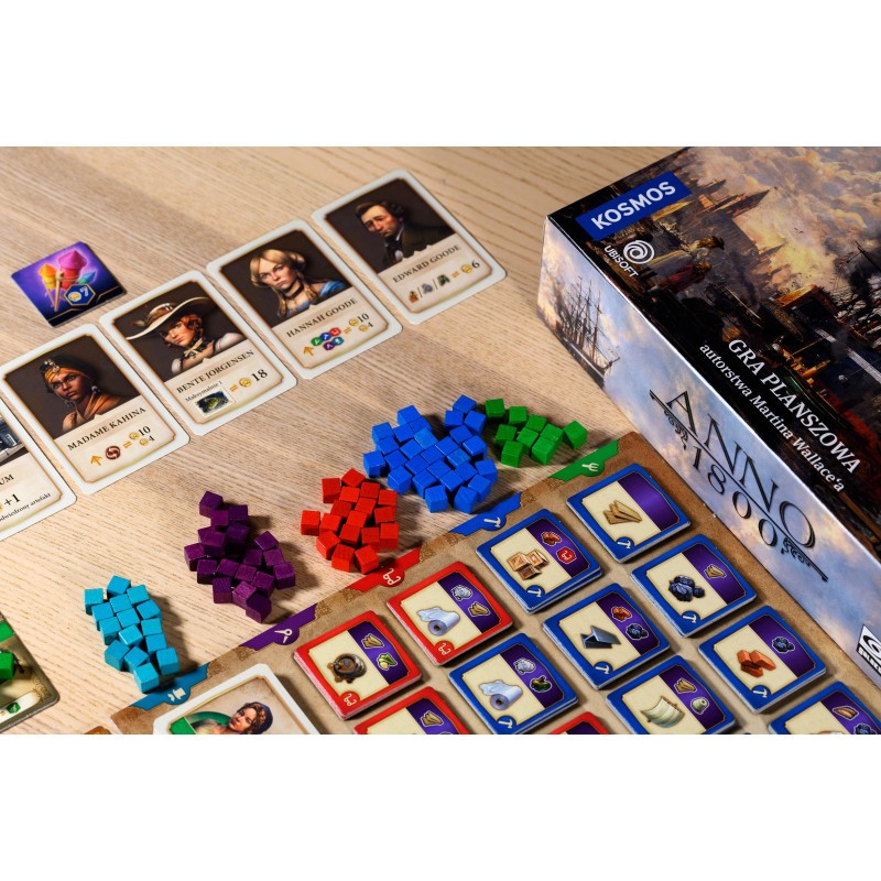 Pozyskaj farmerów, robotników, rzemieślników, inżynierów, a nawet inwestorów, aby twoja wyspa stała się prawdziwą potęgą! W Anno 1800 – Grze planszowej gracze rozbudowują własne wyspy, na których wznoszą nowe budynki oraz statki, a także rozwijają możliwości handlu. Jednocześnie muszą zaspokajać potrzeby populacji wyspy oraz wypełniać ważne misje. Ten z nich, który na końcu gry będzie miał najwięcej punktów wpływu, zostanie zwycięzcą!