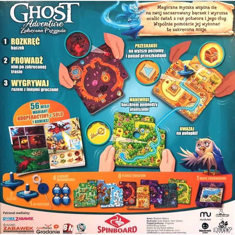 Ghost Adventure to rodzinna gra zręcznościowa, w której zadaniem graczy będzie przeprowadzenie kręcącego się bączka przez kolejne misje na różnych planszach.