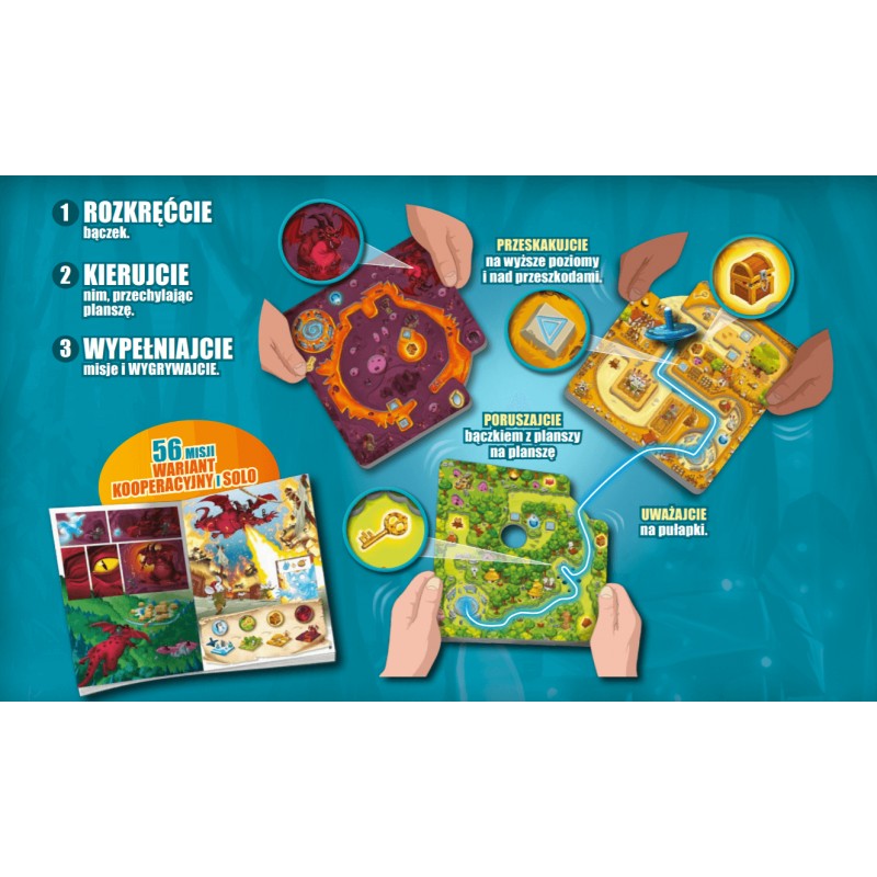 Przeskakujcie na wyższe poziomy i ponad przeszkodami, manewrujcie bączkiem pomiędzy planszami i uważajcie na pułapki.
