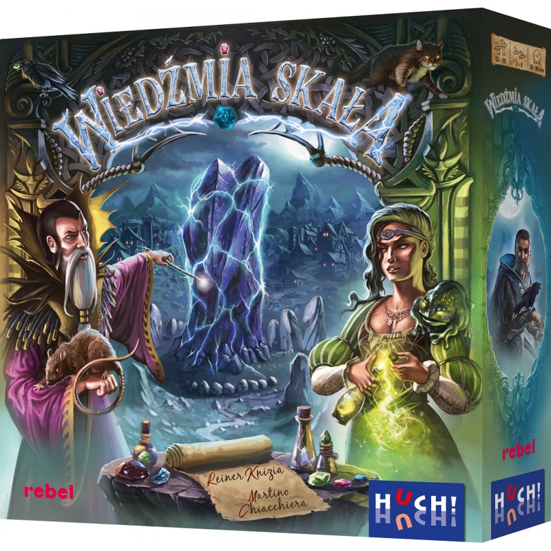 Wiedźmia Skała to gra planszowa, w której wcielacie się w uczonych mistrzów gildii zebranych wokół pradawnego świętego kamienia. Każda osoba zajmuje 1 z 4 wież i stamtąd rozpoczyna grę. Szykujcie w swoich kociołkach zaklęcia i stwórzcie wokół Wiedźmiej Skały sieć magicznej energii. Rozsyłajcie swoje wiedźmy, wyławiajcie z kociołków magiczne kryształy i zróbcie dobry użytek z pentagramu i czarodziejskich różdżek. Nie zapominajcie jednak o przepowiedniach, jeśli chcecie zapewnić sobie zwycięstwo! Nie wszystkie możliwości są zawsze dostępne, więc trzeba mądrze wykorzystywać okazje, które się nadarzają. Po 11 rundach to z Was, które zgromadzi najwięcej punktów zwycięstwa, wygra rozgrywkę i zostanie Wybrańcem Wiedźmiej Skały.