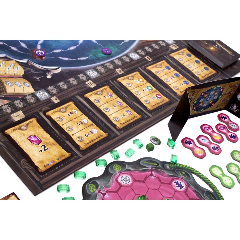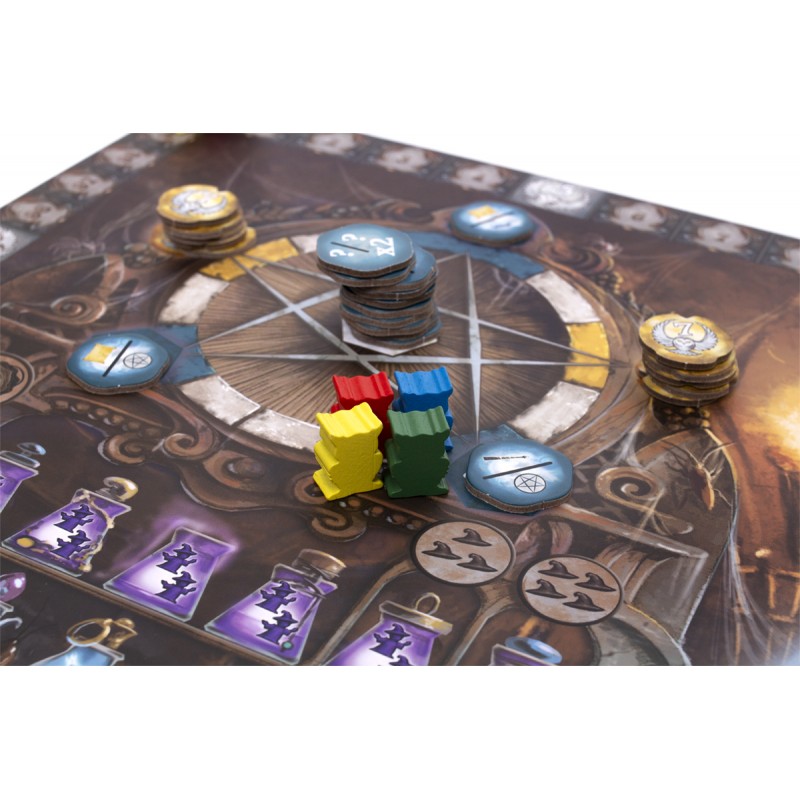 - Akcja pentagramu - umożliwia poruszanie się pionkami po pentagramie, który pozwala uzyskać wartościowe żetony i dodatkowe płytki, które mogą pomóc w realizowaniu przyjętej strategii.