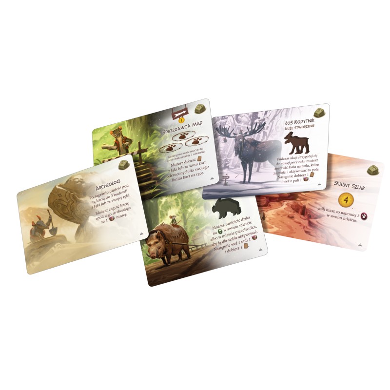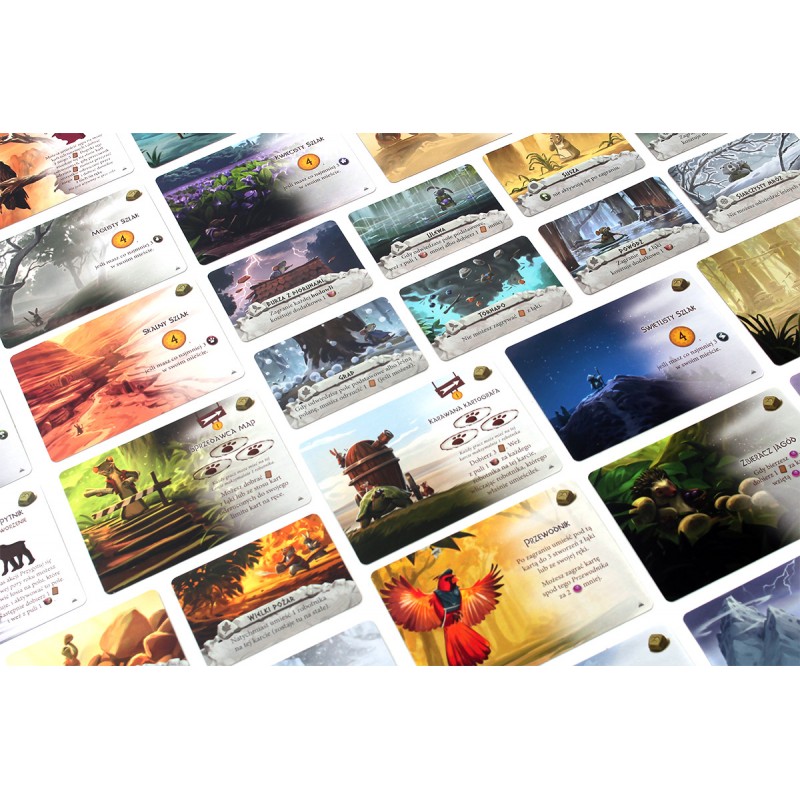 Na początku gry otrzymacie króliczego podróżnika, który będzie przemierzał szlak na planszy gór. To odważne stworzenie będzie zbierało dla Was fragmenty mapy, dzięki której zaplanujecie końcową wyprawę, i odkrywało nowe, nieznane lądy. Ze zmieniającymi się porami roku będziecie musieli stawić czoło wymagającym warunkom pogodowym, co nie pozostanie bez wpływu na Waszą strategię. Sprytnie korzystajcie ze zdolności nowych kart, aby historia, którą napiszecie, i wyprawa, na którą wyruszycie, zostały zapamiętane w Everdell po wsze czasy!