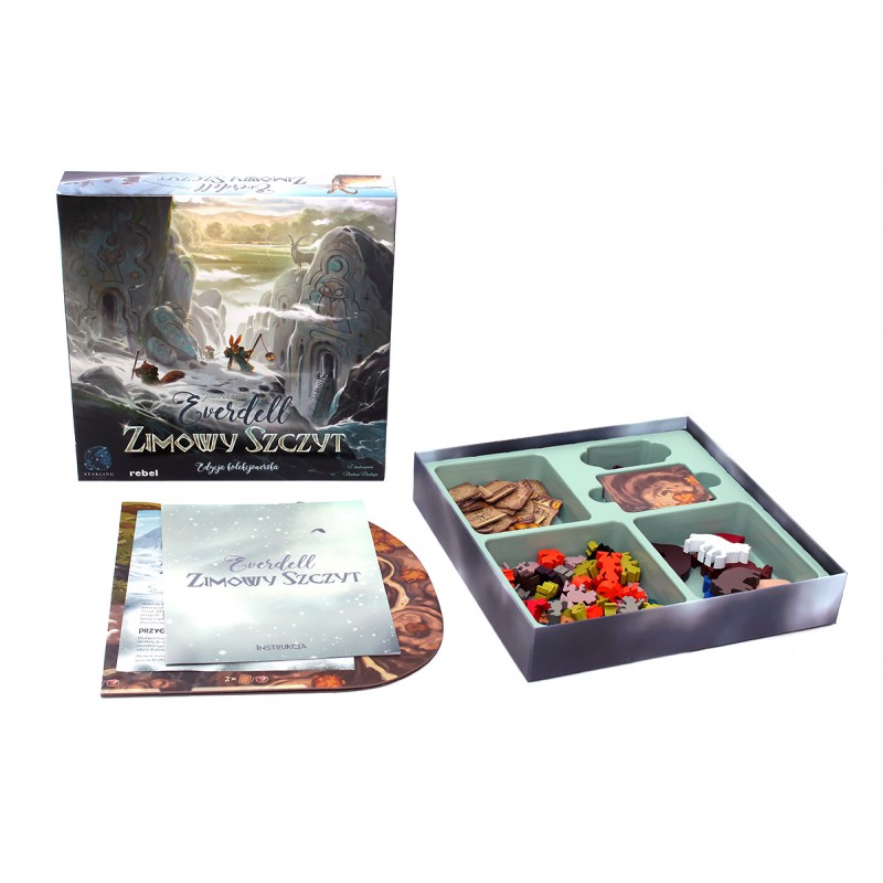 Wyruszcie poza granice bezpiecznej doliny Everdell i zapuśćcie się w tajemnicze i niezbadane rejony, w których czeka na Was przygoda, jakiej jeszcze nie przeżyliście! Ruiny pradawnych budowli, nieznane stworzenia, nowe lądy… Zbierzcie zapasy i odwagę i ruszajcie w niezwykłą podróż przez Góry Strzeliste!
