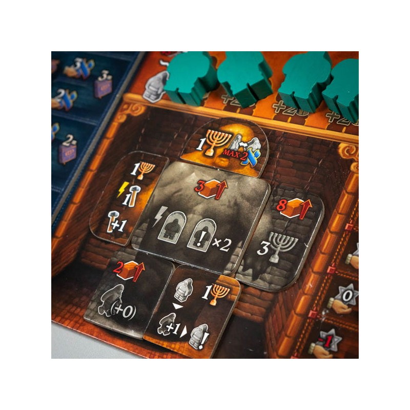 W Golemie macie do wykonania zaledwie 12 akcji, więc dobrze się zastanówcie, na czym przede wszystkim się skupicie. Na przestrzeni rozgrywki będziecie zbierać Menory w trzech kolorach. Przy końcowej punktacji uzyskacie punkty za: czerwone Menory pomnożone przez liczbę posiadanych Golemów, żółte Menory pomnożone przez liczbę stworzonych Artefaktów i niebieskie Menory pomnożone przez liczbę zdobytych Ksiąg. Każdy z was będzie też punktował indywidualnie za otrzymane na początku gry karty Celu.