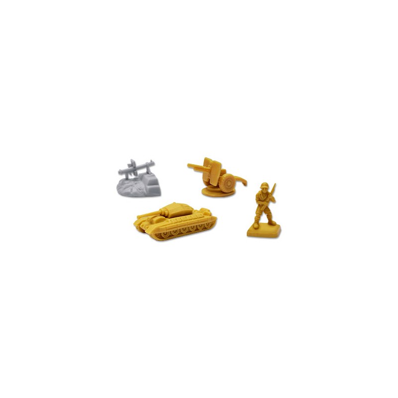 - Kompletny zestaw armii brytyjskiej zawierający: 42 figurki piechoty, 24 czołgi Crusader, 6 25cio funtowych dział oraz 3 figurki broni przeciwpancernej