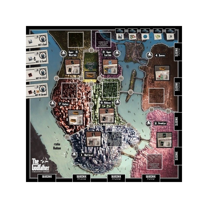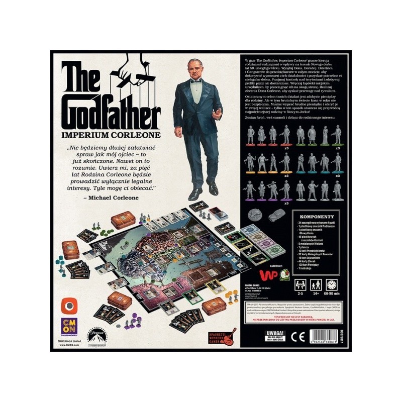 The Godfather: Imperium Corleone to mafijna gra planszowa osadzona w świecie Ojca Chrzestnego, w klimatach mrocznego, niebezpiecznego Nowego Jorku lat pięćdziesiątych ubiegłego wieku. Rozgrywka toczy się na przestrzeni czterech aktów, korespondujących z wydarzeniami z filmu. W ich trakcie twoja familia będzie się rozwijać, zyskując nowych członków i zlecenia od Dona Corleone. Na twoich oczach Nowy Jork będzie rozwijał się w jedną z najważniejszych metropolii świata. Wykorzystaj nowe przedsiębiorstwa, wysyłając do nich swoich gangsterów, aby odebrali należny ci haracz. Rządzić Nowym Jorkiem mogą tylko najbogatsi, więc odkładaj każdego dolara, który nie jest Ci potrzebny w bieżących interesach.