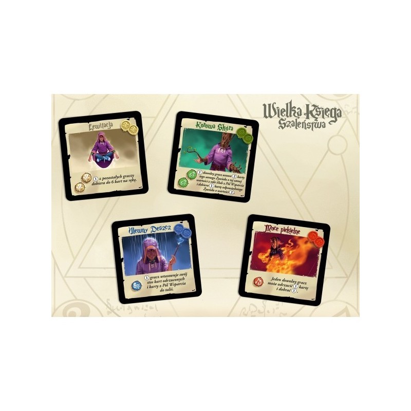 - Faza Akcji – czarodzieje rzucają zaklęcia, zdobywają nowe elementy żywiołów, starają się przełamać klątwy potworów, zdobywają nowe zaklęcia, czy też leczą się z szaleństwa!