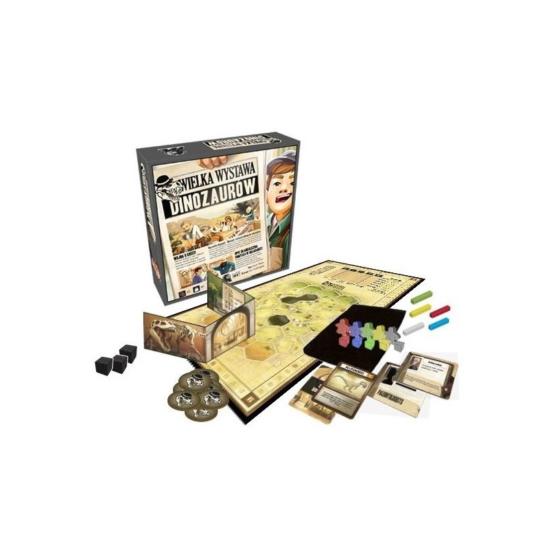 Wielka Wystawa Dinozaurów to gra rodzinna, która łączy w sobie najlepsze cechy prostych i szybkich planszówek z bardzo innowacyjnymi i kreatywnymi rozwiązaniami mechanicznymi. Gracze będą musieli kombinować na planszy korzystając z mniej lub bardziej legalnych akcji, zdobywając kości, które później wykorzystają do stworzenia szkieletu prawdawnej bestii.