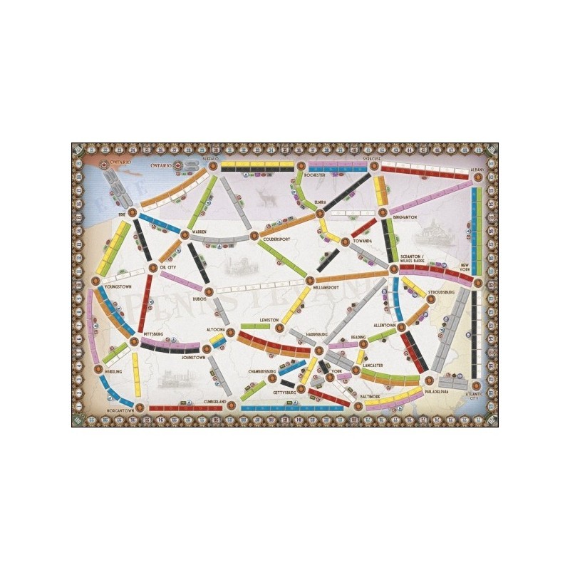 Dodatek "Wsiąść do Pociągu: Wielka Brytania / Pensylwania" zawiera także mapę Pensylwanii - stanu w Ameryce Północnej, w którym kolejnictwo nadawało rytm codziennemu życiu, a jego historia do dziś rozpala umysły i wyobraźnię wielu osób.