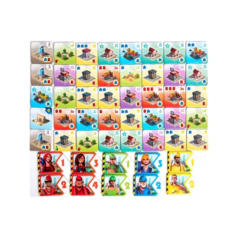 Budynki mieszkalne są sercem Twego miasta, wielu obywateli będzie do niego przybywać, by tam zamieszkać. Musisz także budować Sklepy, aby mieszkańcy mieli gdzie spełniać swoje zakupowe zachcianki. A żeby mieli co kupować, potrzebne są Porty, do których dostarczane są towary. Budynki służb publicznych spełnią potrzebę bezpieczeństwa obywateli Twojego miasta. Oczywiście wszystkie te budynki będą wymagały prądu, aby właściwie funkcjonować, dlatego w Twoim mieście nie może zabraknąć Fabryk, aby go dostarczały. Jednak bądź ostrożny: zbyt duża liczba Fabryk zakryje błękitne niebo smolistym smogiem zanieczyszczeń, a w efekcie na koniec gry otrzymasz ujemne punkty... chyba że uda Ci się przeznaczyć pewne obszary na Parki i zapewnić mieszkańcom świeże powietrze.