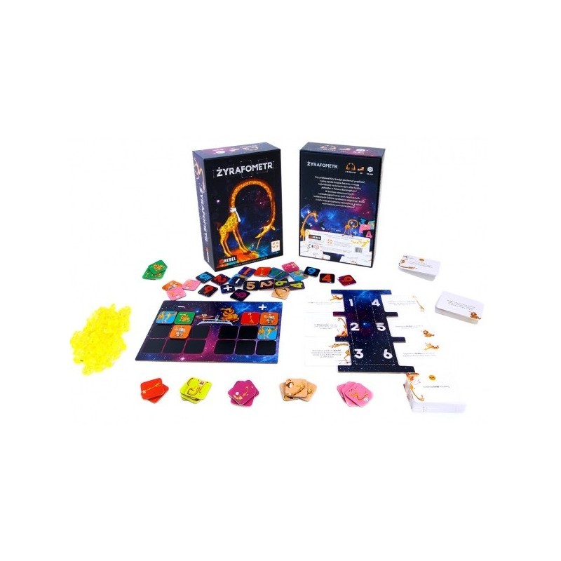 Żyrafometr to gra imprezowa i edukacyjna, w której od dwóch do ośmiu graczy ma okazję stanąć przez zbiorem najróżniejszych faktów dotyczących otaczającego nas świata i wspólnymi siłami (lub grając przeciwko sobie) obstawiać, które z nich mają przypisaną najmniejszą, a które największą liczbę.