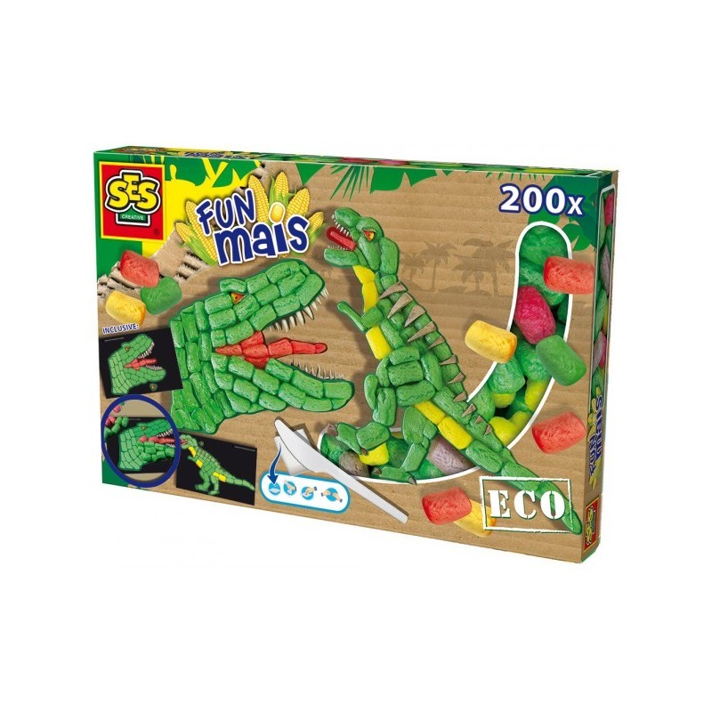 FunMais są tworzone z naturalnej skrobi kukurydzianej i barwników spożywczych. To w pełni bezpieczna i ekologiczna zabawa umożliwiająca dziecku budowanie przestrzennych form - wystarczy tylko lekko zmoczyć "chrupki" FunMais i połączyć je ze sobą. Za pomocą FunMais można tez wyklejać obrazki, tworząc niepowtarzalne płaskorzeźby, można zmieniać ich kształt mocniej je mocząc w wodzie. Zabawa z FunMais pomaga rozwijać dziecięcą wyobraźnię przestrzenną, zdolności manualne i kreatywność. Zestaw Dinozaury zawiera: 170 elementów FunMais (w kolorach pomarańczowym, zielonym i żółtym), dwie karty z wzorami dinozaurów, gąbeczkę, nożyk (zrobiony z kukurydzy), instrukcję. Zabawka dla dzieci od 3 roku życia. Wyprodukowano w Holandii.