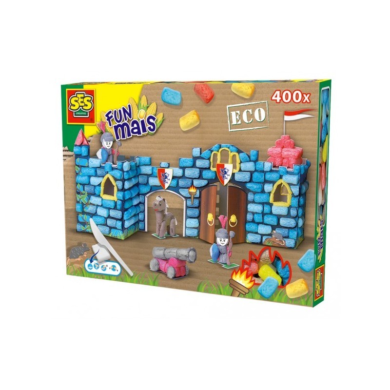 FunMais są tworzone z naturalnej skrobi kukurydzianej i barwników spożywczych. To w pełni bezpieczna i ekologiczna zabawa umożliwiająca dziecku budowanie przestrzennych form - wystarczy tylko lekko zmoczyć "chrupki" FunMais i połączyć je ze sobą. Za pomocą FunMais można tez wyklejać obrazki, tworząc niepowtarzalne płaskorzeźby, można zmieniać ich kształt mocniej je mocząc w wodzie. Zabawa z FunMais pomaga rozwijać dziecięcą wyobraźnię przestrzenną, zdolności manualne i kreatywność. Zestaw Zamek zawiera: 400 elementów FunMais (w kolorach: niebieskim, czerwonym, żółtym, szarym, białym), formę zamku, gąbeczkę, plastikowy nożyk, instrukcję. Zabawka dla dzieci od 3 roku życia. Wyprodukowano w Holandii.
