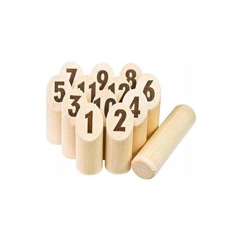 - drewniane kręgle (ponumerowane od 1 do 12)