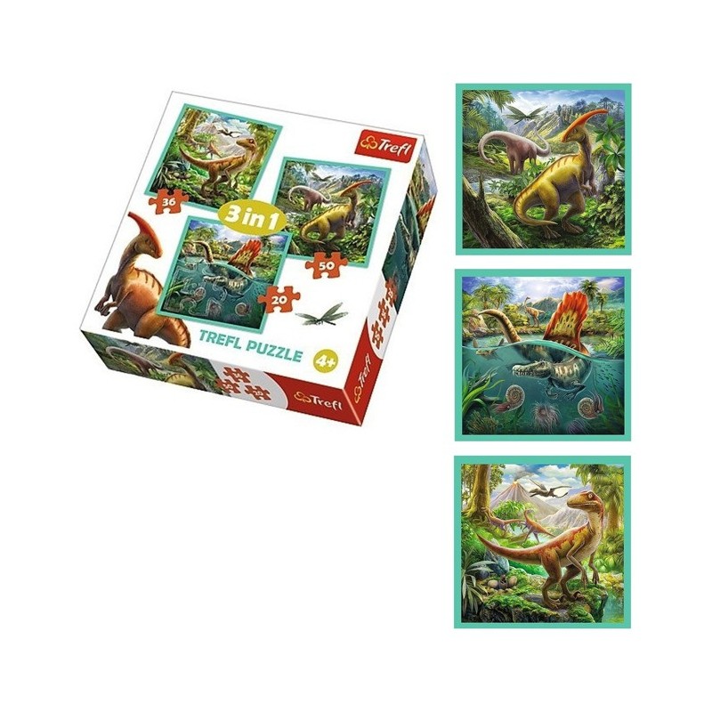 Puzzle 3w1 - Świat dinozaurów